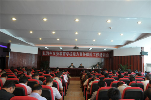 紅河州義務教育學校校方責任保險培訓會于2013年11月7日在建水縣昌源大酒店召開。所轄各縣市教育局負責校方責任保險工作的具體工作人員和各縣市鄉(xiāng)鎮(zhèn)中學、中心校校長參加了此次培訓。我公司客服部、重點客戶部培訓人員應邀參加了此次會議,并進行了培訓。培訓內容包括:校方責任保險工作介紹、校方責任保險投保流程、索賠流程介紹、校園安全事故分析報告、自然災害應急處置能力培訓、學校食品安全監(jiān)管培訓等。