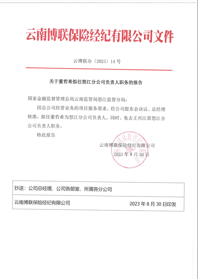 云南博聯(lián)保險經(jīng)紀有限公司關于變