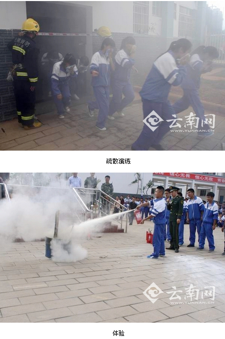 云南云縣1000名師生體驗(yàn)火場(chǎng)逃生(圖)